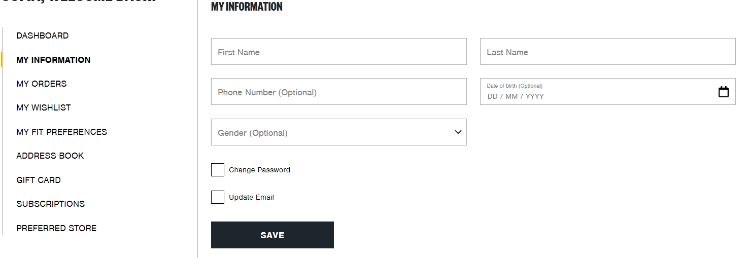 From there, you can update your personal information, addresses, and subscription preferences. Please double-check for any spelling errors before clicking the Update button to save your changes.